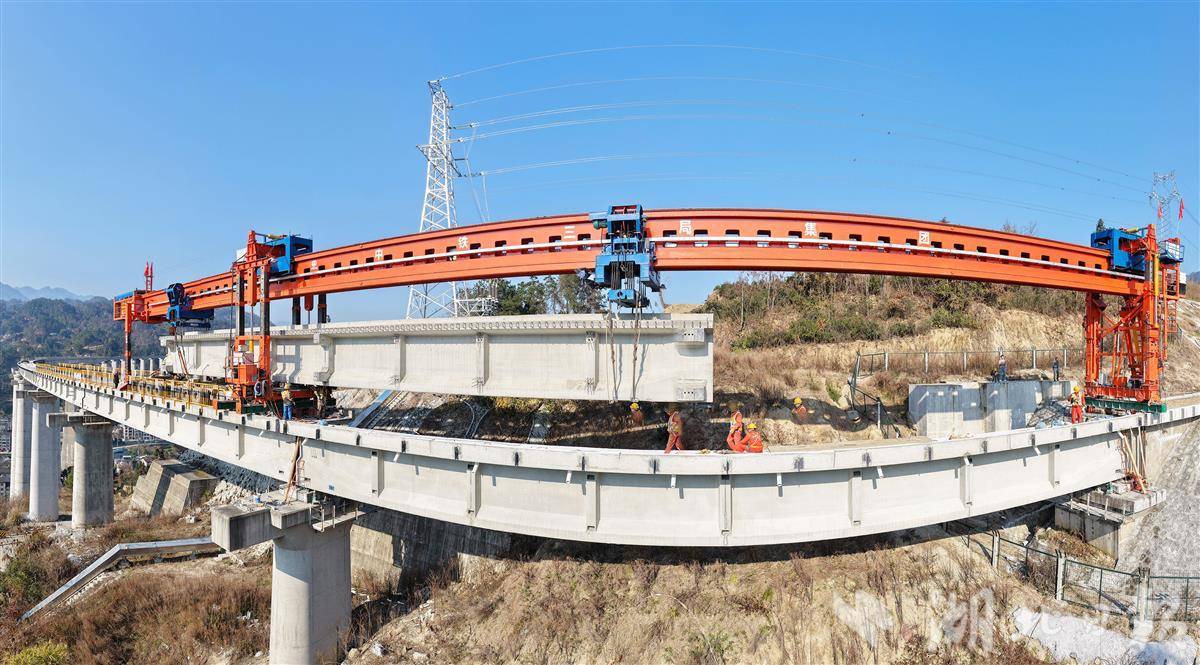 1月7日,中铁三局施工方承运秭归县茅坪镇三峡中心茅坪港青蛙港铁路九石大桥进行T形梁架设。